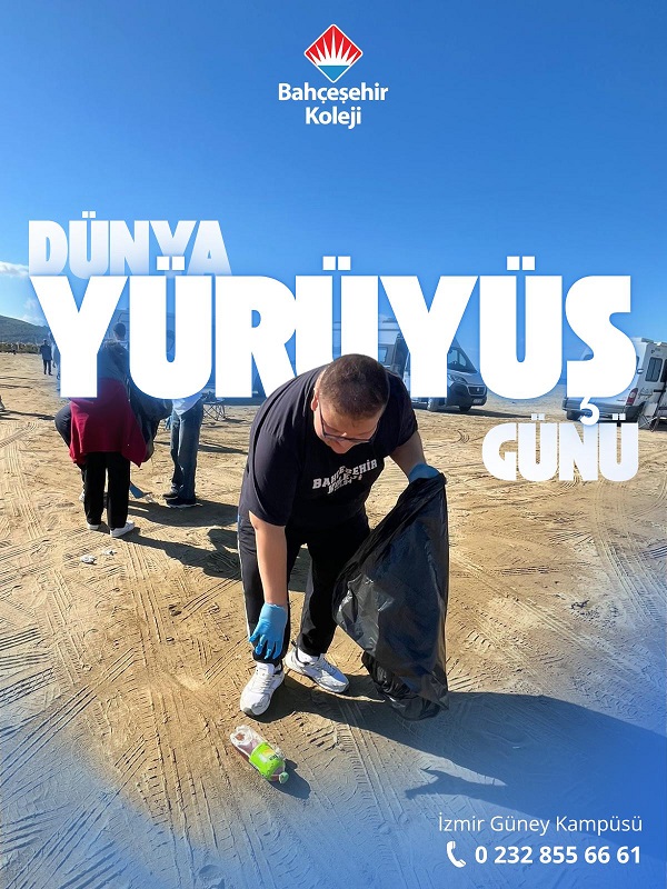 Bahçeşehir Koleji İzmir Güney Kampüsü lise öğrencileri, Dünya Yürüyüş Günü kapsamında çevre duyarlılığına dikkat çekmek ve sürdürülebilir bir gelecek adına farkındalık oluşturmak amacıyla Pamucak Sahili’nde anlamlı bir etkinlik gerçekleştirdi.