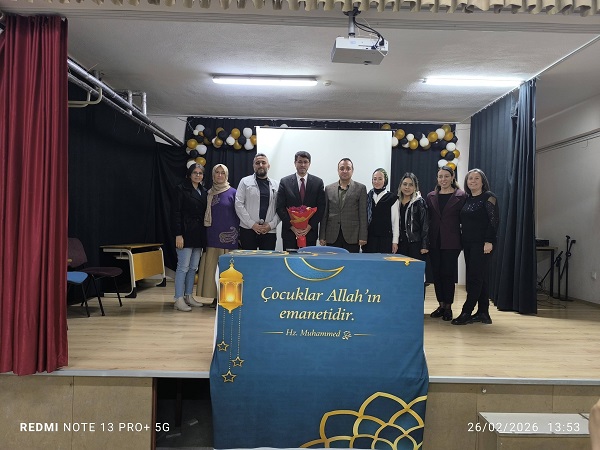 KONFERANSIN ardından Okul Müdürü Tevfik Fikret Çiftçi tarafından İlçe Müftüsü Mehmet Muslu’ya günün anısına çiçek takdim edildi. Program, öğretmenlerle birlikte çekilen hatıra fotoğrafının ardından sona erdi.