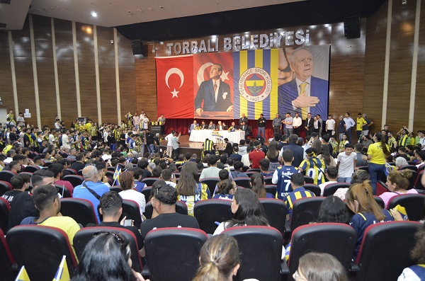 Fenerbahçe’nin efsane başkanı Aziz Yıldırım, dün Torbalı’ya geldi. Fenerbahçeli taraftarlar efsane başkanlarına yoğun sevgi seli gösterirken, salon tıka basa doldu. Başkan Yıldırım, Torbalı’dan taraftara da birçok müjde verdi