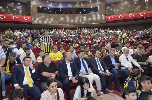 TORBALI Fenerbahçeliler Derneği Başkanı Refik Erol’un girişimleriyle Fenerbahçe’nin efsane başkanı Aziz Yıldırım, dün Torbalı’ya geldi. Yıldırım, bugün saat 13.30’da İsmail Uygur Kültür Merkezi Konferans Salonu’nda gerçekleşen söyleşide taraftarlara seslendi. Fenerbahçeli taraftarlar efsane başkanlarına yoğun sevgi seli gösterirken, salon tıka basa doldu.