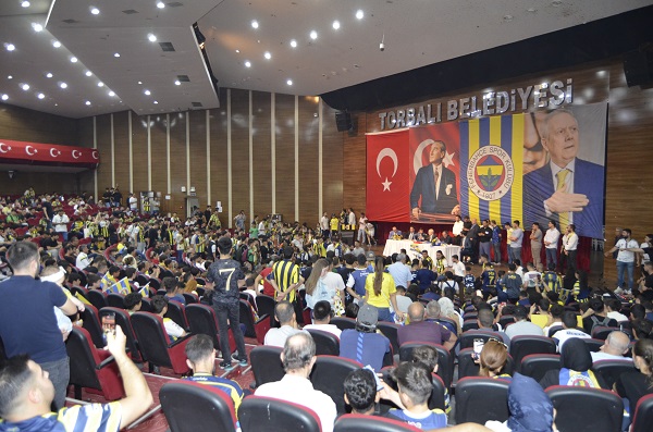 GERÇEKLEŞEN buluşmada Torbalı Belediye Başkan Vekili Ertan Çelik, Aziz Yıldırım’a plaket takdim etti. Taraftarların sorularını da cevaplayan Yıldırım, hafta sonu gerçekleşecek olan kongreyi kazanması takdirde dünyanın en iyi teknik direktörleri arasında gösterilen Jose Mourinho’yu takımın başına getireceğini müjdeledi.