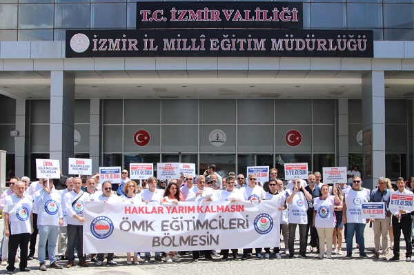 YAPILAN açıklamada, “Haklar Yarım Kalmasın, ÖMK Eğitimcileri Bölmesin Öğretmenlik Meslek Kanunu (ÖMK) tasarısında Şube Müdürü, Uzman, Araştırmacı, Müfettiş, Milli Eğitim Müdürü ve Yardımcıları kadrolarında bulunan eğitim çalışanlarına, Uzman/Başöğretmenlik ünvanı hakkı TANINMAMASINI kabul etmiyoruz. Uzman Öğretmenlikte süre şartı 5 Yıl Başöğretmenlikte 10 yıl olsun. 3600 ek göstergenin 1.Dereceye gelen tüm memurlara verilmesi, taleplerimizi ifade ediyoruz” denildi.