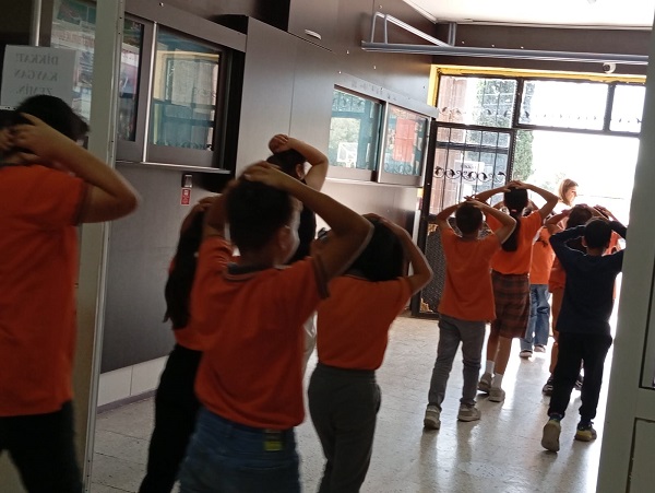 TATBİKAT okulda acil durum sirenlerinin çalmasıyla başladı. Siren sesiyle sınıflarında ders işleyen öğrenciler ellerini başlarının üstüne koyarak dışarı çıkıp bahçedeki güvenli alanda toplandı.