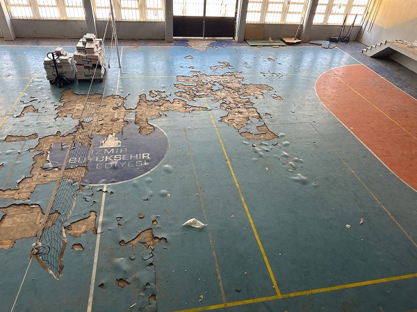Torbalı Çetineller Ortaokulu’nun uzun süredir kullanılamaz halde olan spor salonu, yenilenen zeminiyle yeniden öğrencilerin hizmetine sunuldu.