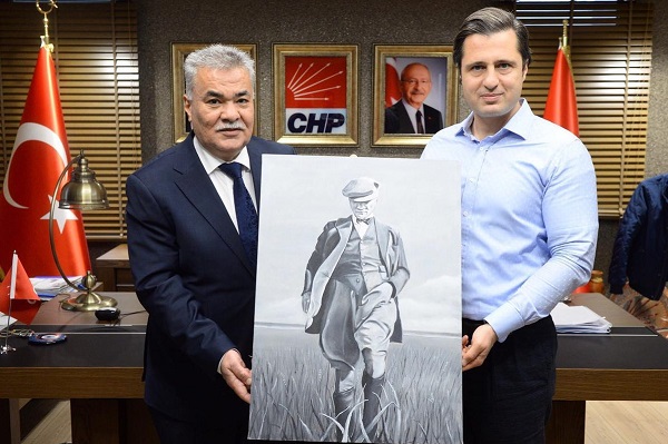 BAŞKAN Tekin ziyarette, Yücel’e özel Atatürk tablosu hediye etti. İl binasında uygun görülen yere asılacak olan hediye ve Torbalı heyetinin ziyaretine teşekkür eden CHP İzmir İl Başkanı Deniz Yücel, “Torbalı Belediye Başkanımız Mithat Tekin ve Belediye meclis üyelerimiz İl başkanlığımızı ziyaret etti. Nazik ziyaretlerinden dolayı kendilerine teşekkür ederiz” dedi.