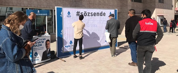 ÇALIŞMAMIZ, vatandaşlarımız tarafından ilgi ve merakla karşılandı. En büyük temennimiz yapıcı eleştirileri artırarak özgür bir düşünme alanı oluşturmak, bu çalışmamız ile bu idealimizi sokağa taşımış olduk. Şunu da çok iyi gördük ki düşüncesini ifade etmekte çekinen insanlarımız fazlası ile var. Bu da İktidarın tehditkar ve kutuplaştırıcı siyaset dilinden kaynaklanıyor. Ama halkımıza ve gençlerimize korkmadan eleştirilerini yöneltebilecek bir iktidar hazırlığı içindeyiz. Deva Partisini İktidara taşıyacak mottomuz #konuşantürkiye” açıklamasında bulundu.