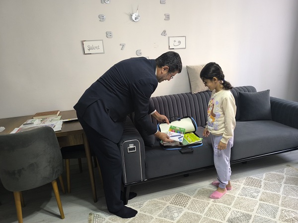 ZİYARET sırasında İlçe Müftüsü Muslu, küçük öğrenciye özel bir hediye takdim etti. Hediyeyi alan F. N. Özkara’nın yüzünde oluşan tebessüm, ziyarete katılan tüm ekip için büyük bir moral kaynağı oldu.
