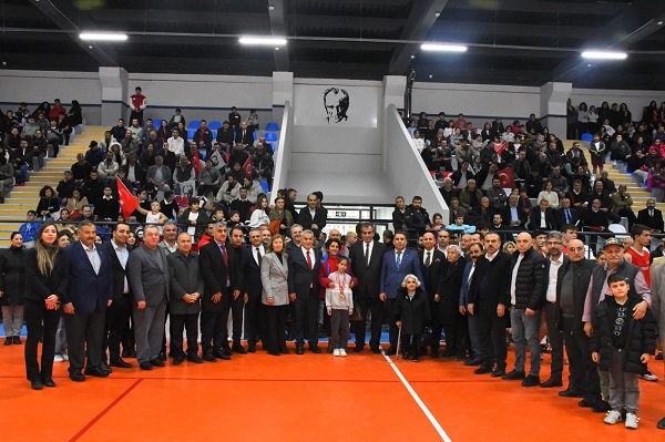 TORBALI Belediyesi’nin Erdemoğlu Holding (Merinos-Sasa) işbirliğiyle Cumhuriyet Mahallesi’nde yer alan belediyeye ait arsaya kazandırdığı spor kompleksinin açılışı gerçekleşti. Sadece 6 ayda inşaatı tamamlanan, peyzaj çalışmaları gerçekleşen kompleks, bugün itibariyle ilçeye hizmet verecek. İlçedeki, Gençlik ve Spor Müdürlüğü’ne bağlı kapalı spor salonunun depreme dayanıksız olması nedeniyle yıkılmasıyla birlikte, ilçede büyük bir eksiklik olan kapalı salon, şıklığıyla da dikkat çekiyor. Basketbol, voleybol gibi müsabakaların oynanabileceği, tribünü ve elektronik skorboardları bulunan kapalı salon, tenis kortu ve egzersiz aletlerinin bulunduğu spor kompleksinin açılışına salonun ilçeye kazandırılmasında öncülük eden Belediye Başkanı Mithat Tekin’in yanı sıra CHP Gaziantep Milletvekili Melih Meriç, Torbalı Kaymakamı Ercan Öter, Başsavcı İsmail Güngör, Erdemoğlu Holding yönetim kurulu başkanı İbrahim Erdemoğlu, CHP Torbalı İlçe Başkanı Hakkı Polat, Torbalı Ticaret Odası Başkanı Abdulvahap Olgun, Esnaf ve Sanatkarlar Odası Başkanı Halil Gülcü, TORBALI Esnaf Kefalet ve Kredi Kooperatif Başkanı Latif Pazarcı, Tepeköy Esnaf ve Sanatkarlar Kredi ve Kefalet Kooperatifi Başkanı Semih Canbeldek, meclis üyeleri, oda başkanları, sporcular ve çok sayıda vatandaş katıldı.