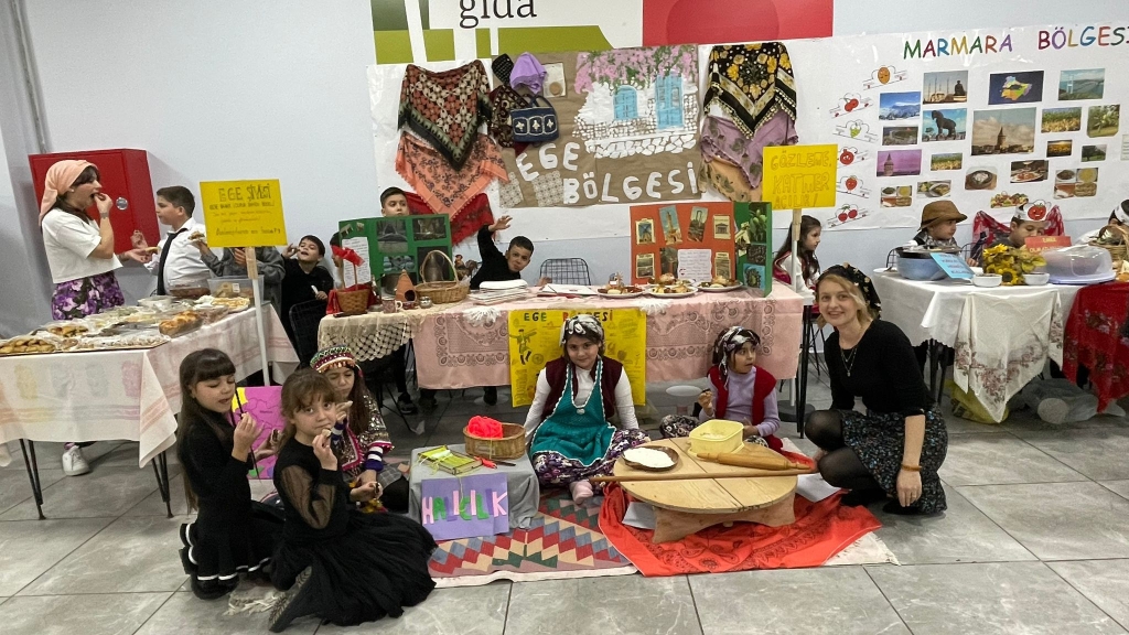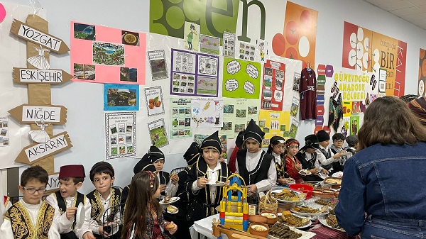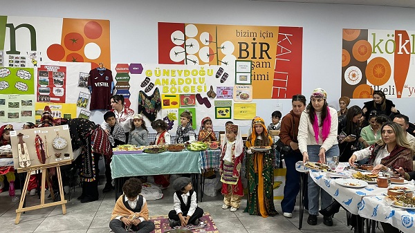 BU unutulmaz etkinlik, hem öğrencilerin hem de velilerin aktif katılımıyla tam bir dayanışma şölenine dönüştü. Her biri lider öğretmenler rehberliğinde hazırlanan öğrenci grupları, farklı bölgelerimizin mutfak kültürünü, el sanatlarını, giyim tarzını ve müzikal ritimlerini tanıttı. Etkinlikte veliler, kendi bölgelerine özgü yemekler ve geleneksel kıyafetlerle organizasyona katkı sağladı. Sergilerde Anadolu’nun dört bir yanından taşınan kültürel değerler, katılımcılar tarafından büyük beğeni topladı.