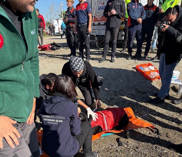 TATBİKATTA dikkatleri üzerine çeken unsurlardan biri ise Torbalı Belediyesi Veteriner İşleri Müdürlüğü bünyesinde hizmet veren “Canbulans” oldu. Türkiye’de sayılı örneklerinden biri olan hayvan ambulansı olarak görev yapan Canbulans, tatbikatta kurtarılan sokak hayvanlara müdahale için hazır bulundu. Öte yandan tatbikatta Türkiye’nin tek akredite hayvan kurtarma derneği olan HAK-TİM de yer aldı.