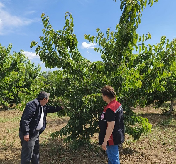 GERÇEKLEŞTİRİLEN tarla ziyareti kapsamında, kuraklıkla mücadelede suyun etkin ve verimli kullanımı, kiraz gövde kurdu zararlısı ile kök çürüklüğü hastalığına karşı alınabilecek önlemler ele alındı.