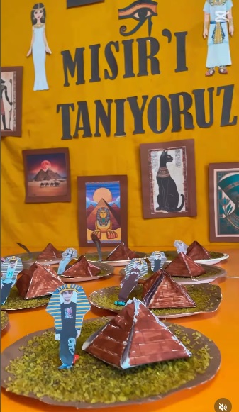ETKİNLİK kapsamında çocuklara Mısır’ın coğrafi konumu, tarihi yapıları, geleneksel yaşam biçimi ve simgesel figürleri çeşitli görseller ve oyunlarla anlatıldı. Öğrenciler, firavunlardan piramitlere uzanan renkli bir yolculuğa çıkarken, sınıf ortamı da tema doğrultusunda hazırlanarak öğrenme süreci daha eğlenceli hale getirildi.