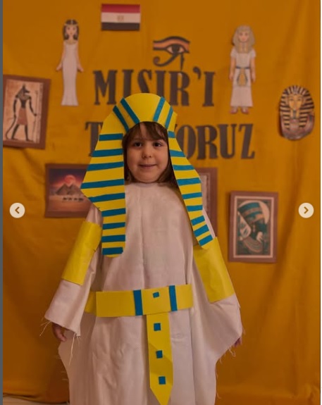MİNİKLER ayrıca Mısır’a özgü kostümler giyerek etkinliğe katıldı. Farklı kültürleri tanımanın önemine vurgu yapan öğretmenler, çocukların bu tür uygulamalı etkinliklerle hem eğlendiklerini hem de kalıcı bilgiler edindiklerini belirtti.