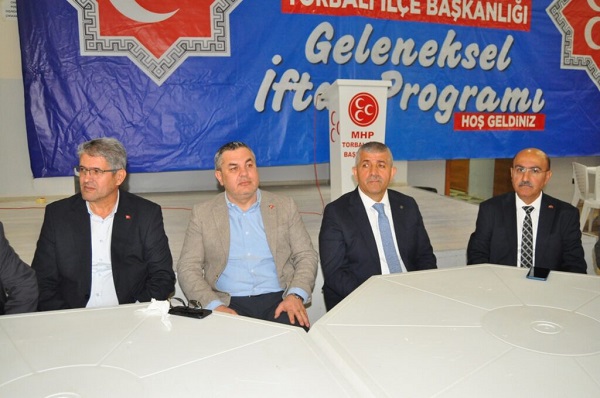 MHP İzmir İl Başkanı Veysel Şahin de yaptığı konuşmada İstanbul’daki terör ve yolsuzluk soruşturmasına dikkat çekerek, “Seçimle geldi diye hiç kimsenin suç işleme, yolsuzluk yapma hakkı olamaz. Hırsızlık bu ülkede hem hukuki, hem de ahlaki bir suçtur. Biz yargımıza güveniyoruz, en doğru kararı vereceklerine inanıyoruz” dedi. Terörsüz Türkiye gündemine dair de önemli açıklamalarda bulunan Şahin, “Dünyanın hiç bilmediğimiz ülkelerine el uzatıyoruz. Bizim gönül coğrafyamız Afrika’nın en ücra köşesindeki Müslüman kardeşimizi nasıl kapsıyorsa, yanımızdaki Kürt kardeşimizi de kapsar. Bin yıldır bu topraklarda birlik ve beraberlik içerisinde yaşayan Türkler ve Kürtler ve Türklerin kardeşliği için sayın Cumhurbaşkanımız Recep Tayyip Erdoğan ve sayın Genel Başkanımız Devlet Bahçeli çok büyük emekler veriyorlar. İnşallah 5 Mart’ta bu sorun tarihe karışacaktır. İftar soframıza katılan siz değerli hemşehrilerimize ve emeği geçenlere teşekkür ediyorum, şimdiden tüm Torbalı halkına hayırlı bayramlar diliyorum” dedi.
