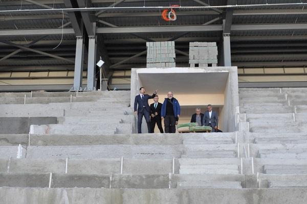 KAYA, yapımı devam eden Spor Kompleksinde de incelemelerde bulundu. Eski ve artık yetersiz kalan 7 Eylül Stadı’nın bulunduğu alana yapılan dev spor kompleksini ziyaret eden Kaya, “Bu alanda da yine ilçemize yakışır modern bir stadyum, yarı olimpik kapalı yüzme havuzu, tenis kortu, içerisinde 600 kişilik spor salonunun da bulunduğu modern bir Gençlik Merkezi, dinlenme alanları, çeşitli etkinliklerin yapılabileceği bir konferans salonumuz olacak.