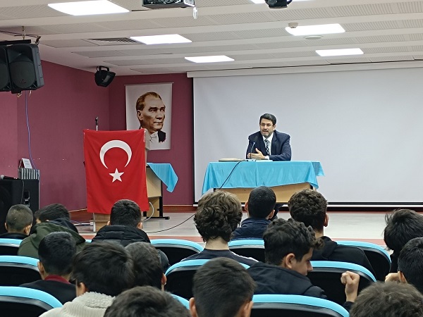 İLÇE Müftü Muslu, gençlere; zamanı iyi kullanma, disiplinli ve düzenli ders çalışma, sosyal medyada vaktin heba edilmemesi, internetin faydalı bilinçli ve güvenli kullanımı ayrıca sigara vb. bağımlılık yapan zararlı maddelerden uzak durulması ile ilgili konuşma gerçekleştirdi.