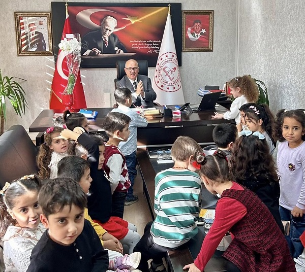Torbalı Nene Hatun Anaokulu öğrencileri, 24 Kasım Öğretmenler Günü dolayısıyla Torbalı İlçe Millî Eğitim Müdürlüğünü ziyaret etti. Minik öğrenciler, İlçe Millî Eğitim Müdürü Kadir Kadıoğlu’nun öğretmenler gününü kutlayarak kendisine çiçek takdim etti.
