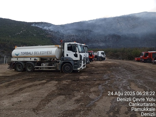 TORBALI Belediyesi’ne ait araçlar, yangının kontrol altına alınması için gece gündüz demeden görev yapan itfaiye ve orman ekipleriyle birlikte sahada aktif olarak yer aldı. Yapılan açıklamada, “Büyük bir özveriyle kontrol altına alınan yangından etkilenen tüm Denizli halkına geçmiş olsun dileklerimizi iletiyoruz. Torbalı Belediyesi olarak her zaman komşu il ve ilçelerimizin yanında olmaya devam edeceğiz.” denildi.