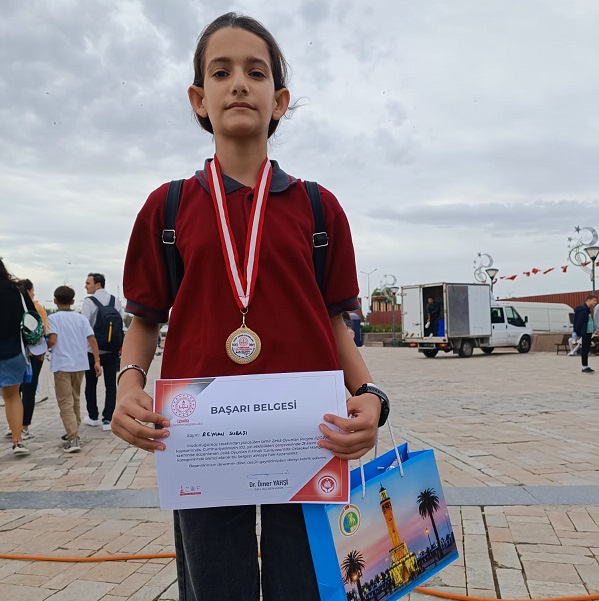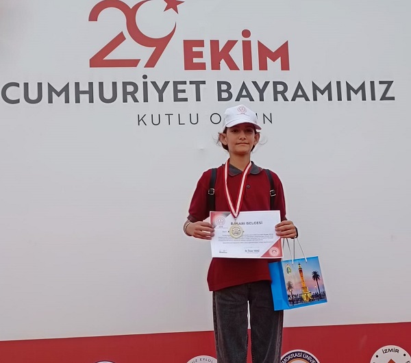 OKULUN 7/A sınıfı öğrencisi Reyhan Subaşı, Cumhuriyetimizin 102. yılı etkinlikleri kapsamında düzenlenen İZOP (İzmir Akıl Oyunları Projesi) İl Turnuvası finalinde İzmir birincisi oldu. Reyhan Subaşı, büyük başarısının ardından ödülünü İzmir Valisi Süleyman Elban’ın elinden aldı.