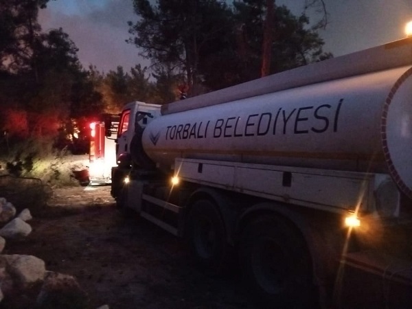 YANGIN alanına 2 tanker, 1 insani yardım aracı ve 7 kişilik TAKUT ekibi sevk eden Torbalı Belediyesi, yangının kontrol altına alınması için yoğun çaba gösteriyor.