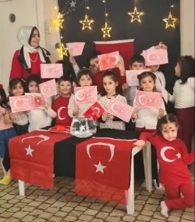 HENÜZ küçük yaşlarda olmalarına rağmen büyük bir dikkat ve heyecanla dersi takip eden öğrenciler, Türk bayrağının neyi temsil ettiğini öğreticilerinden dinledi. Etkinlikte çocuklara, bayrağın sadece bir sembol değil; bağımsızlığın, birlik ve beraberliğin simgesi olduğu sevgi diliyle aktarıldı.