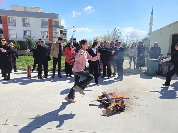 KUTLAMALAR kapsamında geleneksel Nevruz ateşi yakıldı ve katılımcılar bu ateşin üzerinden atlayarak baharın gelişini sembolize eden ritüelleri yerine getirdi. Ayrıca demir dövme geleneği canlandırılarak, Nevruz’un tarihsel köklerine dikkat çekildi. Öğrenciler ve öğretmenler, doğanın uyanışını ve yeni başlangıçları temsil eden bu özel günü renkli etkinliklerle kutladı.