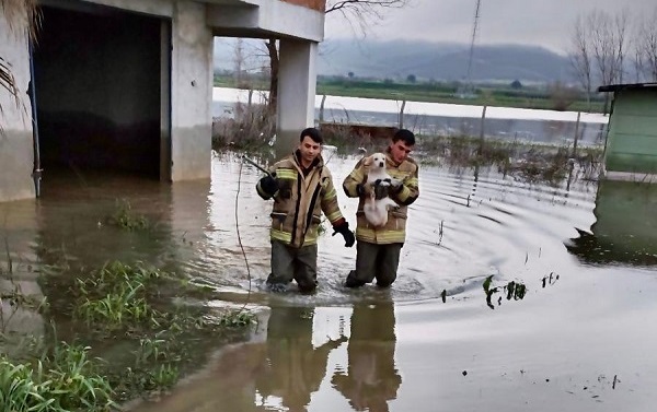 Torbalı ilçesinde inşaat halindeki üç katlı bir binada mahsur kalan köpek, su seviyesinin hızla yükselmesi nedeniyle üst katlara sığındı. Durumu fark eden vatandaşların ihbarıyla, İzmir Büyükşehir Belediyesi İtfaiye Dairesi Başkanlığı ekipleri hızlı bir şekilde bölgeye ulaştı. Bir hayli korktuğu görülen köpek İtfaiyecilerin kucağında güvenli bir şekilde binadan çıkarıldı. İzmir İtfaiyesi, son bir yılda 4 bin 824 hayvanı kurtardı.