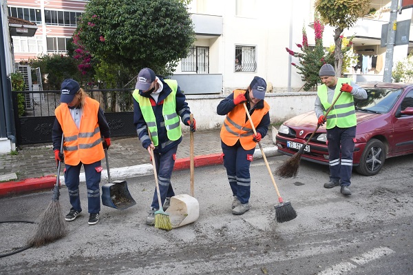 GÜN içinde on binlerce vatandaşın kullandığı caddeler, belediye ekipleri tarafından yürütülen hummalı bir çalışma ile baştan aşağı yıkandı. Hemen ardından ise 100 kişilik geniş bir ekip tarafından süpürülen cadde ve bulvarlar, kısa sürede tertemiz hale getirildi. Gerçekleşen temizlik seferberliğine İzmir Büyükşehir Belediyesi temizlik personelleri de destekte bulundu.