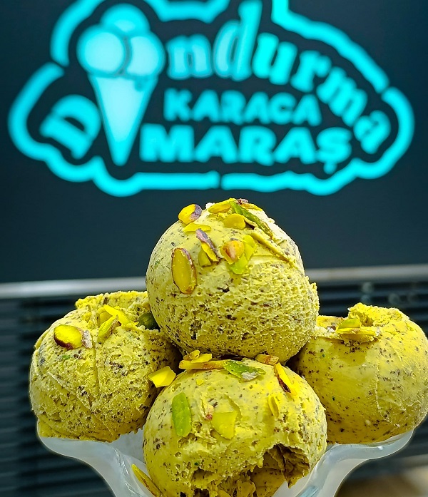 DOĞAL salep, doğal meyve püresi ve yüzde 100 pancar şekeri kullandığı dondurmaların kısa sürede sevilmesi sayesinde ilçede üne kavuştu. İşletmeci Hüseyin Kıraç, ayrıca keçi ve inek sütü karışımıyla bu lezzeti yakaladıklarını anlattı. Kıraç, ayrıca jersey sütü ile de dondurma yaptıklarını sözlerine ekledi. Yaz mevsiminde her akşam önünde insan kuyruğu olan maraş dondurma, taleplere yetişerek müşterilerine bu leziz dondurmaları sunuyor. Yaptığı dondurmaları mevsiminde çıkan meyvelerle ürettiğini, ayrıca meyveci merkezi olan Bursa’dan gelen meyve pürelerini kullandıklarını ifade etti.