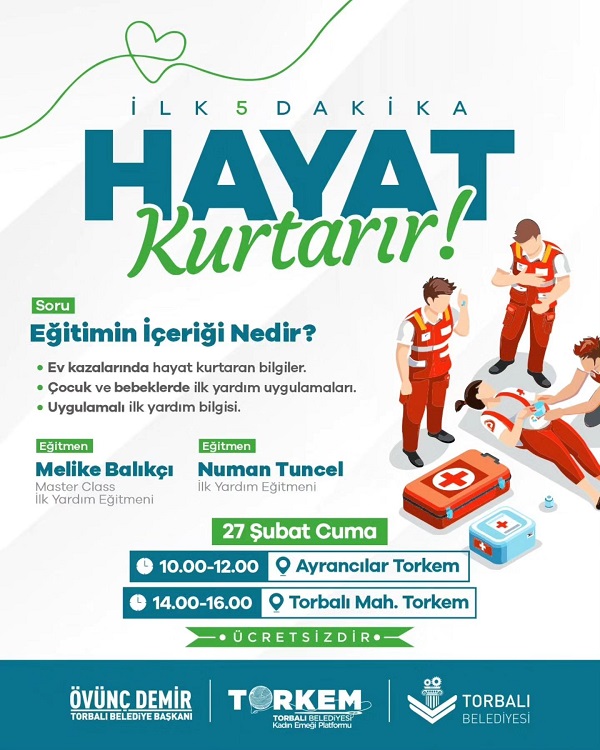 YETKİLİLER, ilk yardım bilgisinin herkes için büyük önem taşıdığına dikkat çekerek, bu tür eğitimlerin yaygınlaşmasının hayat kurtarıcı etkiler oluşturduğunu ifade etti. Program kapsamında toplumda farkındalık oluşturmak, bilinçli birey sayısını artırmak ve acil durumlara hazırlıklı bir Torbalı oluşturmak hedefleniyor.