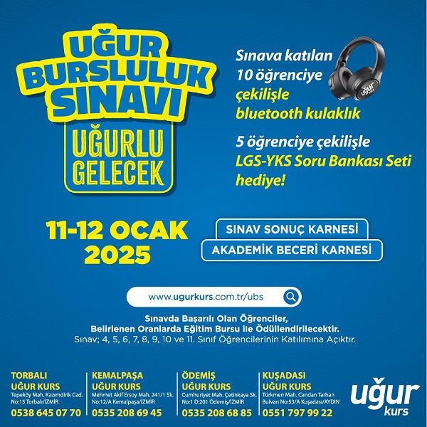 18 yıldır Torbalı’da öğrencilerin sınav başarısına rehberlik eden Torbalı Uğur Kurs, 11-12 Ocak tarihlerinde gerçekleşecek olan ücretsiz Uğur Bursluluk Sınavı (UBS) ile gençlere önemli bir fırsat sunuyor.