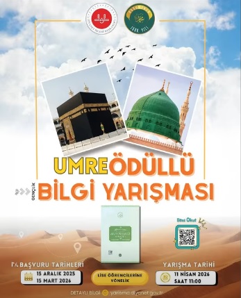 Diyanet İşleri Başkanlığı tarafından düzenlenen Umre Ödüllü Gençlik Bilgi Yarışması için başvuru süreci başlıyor. Gençlerin sahih dinî bilgilerle donanmasını ve manevi değerlerle buluşmasını amaçlayan yarışmanın başvuruları 15 Aralık tarihinde alınmaya başlanacak.