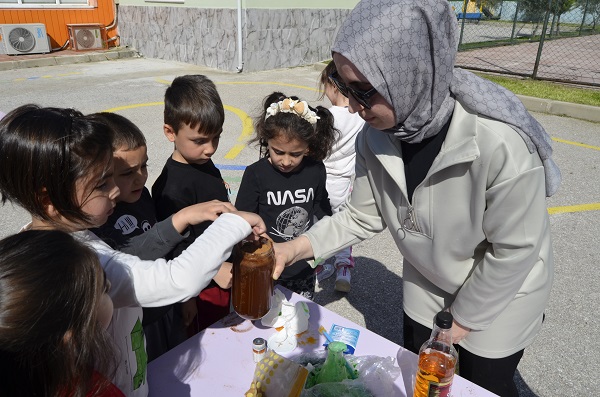 Zeliha Ömer Genç Kızılay Anaokulu sabah grubu öğrencileri, Bilim ve Teknoloji Haftası kapsamında özel bir etkinliğe imza attı. Velilerin de katılımıyla kurulan deney stantlarında, minikler bilimsel keşifler yaparak eğlenceli deneyler gerçekleştirdi.